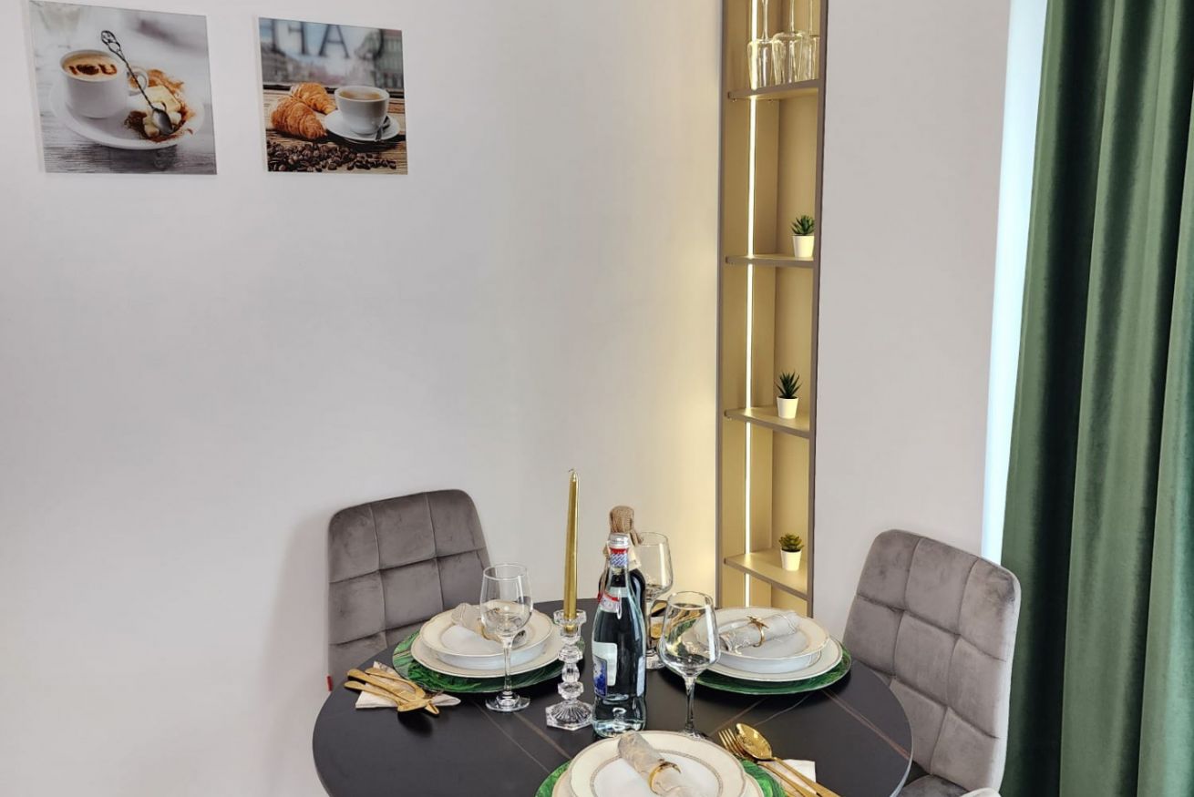 Un apartament care oferă mai mult decât cazare: atmosferă, liniște și confort la superlativ. Fiecare detaliu e gândit pentru ca tu să te simți acasă din prima clipă. Locație liniștită, design rafinat, facilități complete. Rezervă fără griji! Parcare gratuită, WiFi rapid, balcon pentru cafeaua de dimineață, bucătărie complet utilată, pat confortabil, duș spațios, smart TV, aparat de cafea. Perfect pentru cupluri, familii sau lucru remote!